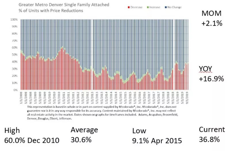 Likewise, the percentage of price reductions rose. This graphic reveals that 36.8 percent of listings in October saw price reductions.