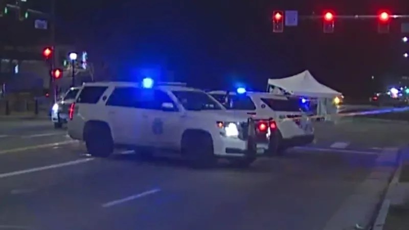 Denver Police at the scene of a December 9, 2022, fatal hit-and-run crash near the intersection of North Sheridan Boulevard and West 38th Avenue that killed Logan Rocklin.