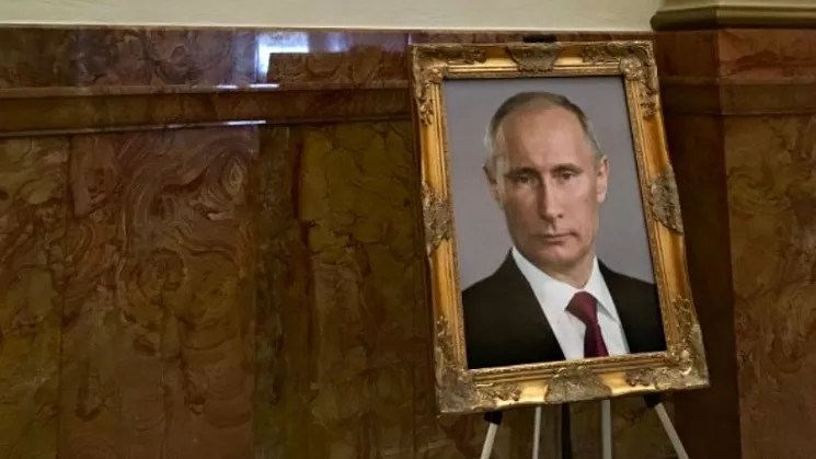 Representative Steve Fenberg tweeted this photo of a Vladimir Putin portrait that appeared in the State Capitol after news broke about the lack of a Donald Trump painting.
