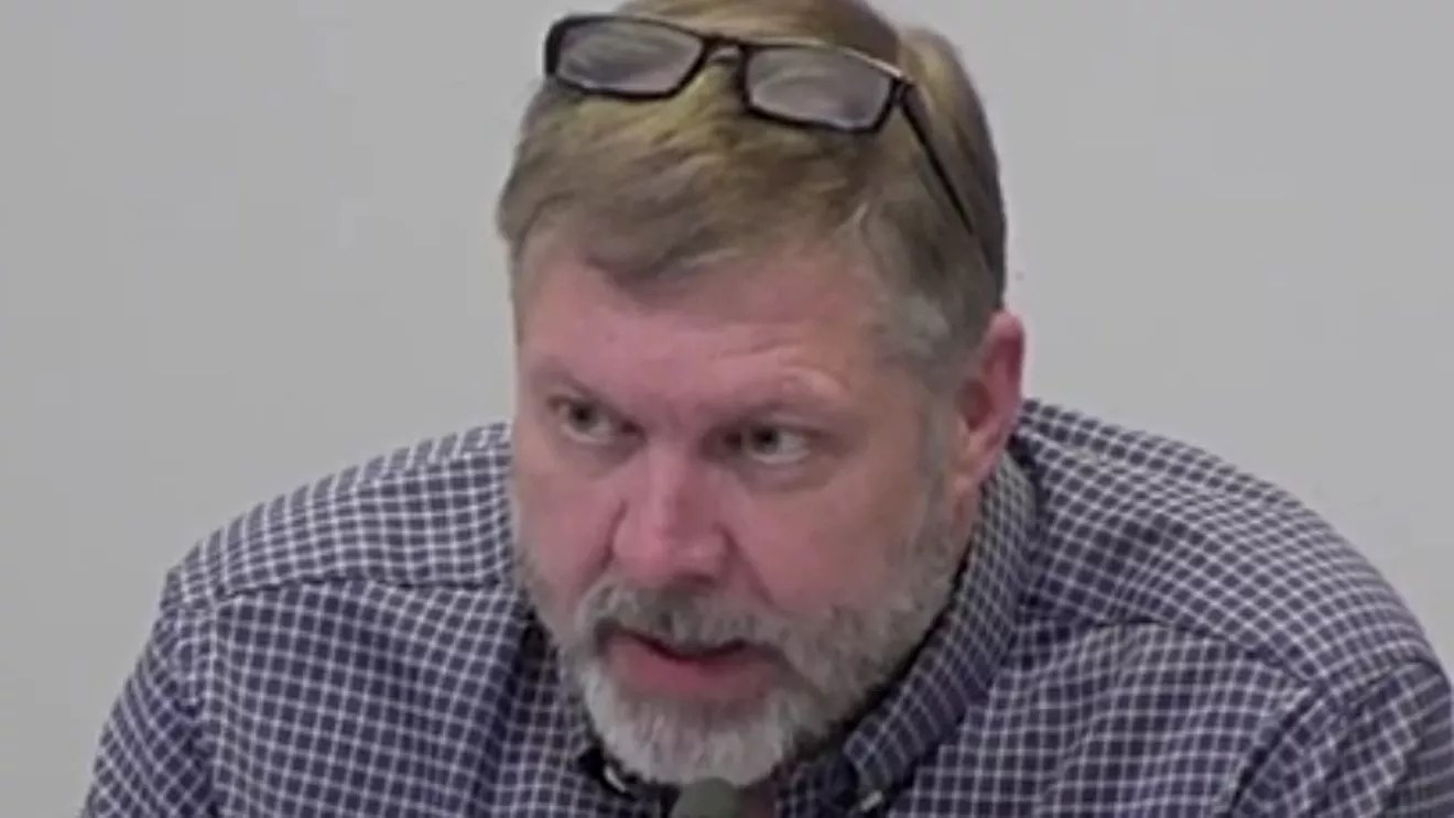 Douglas County Board of Education president Mike Peterson during the March 22 meeting that formalized the hiring of new superintendent Erin Kane.