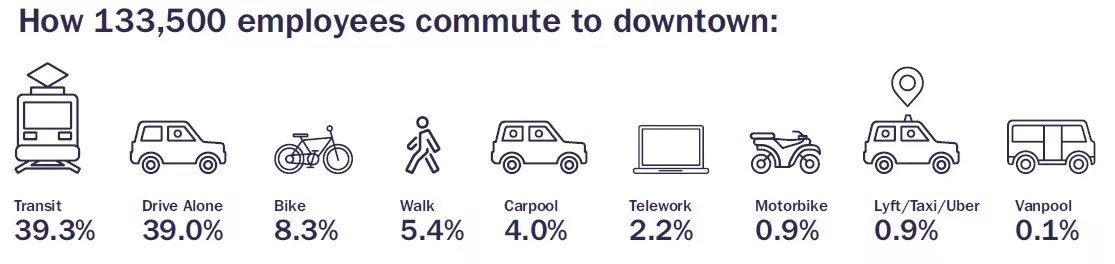 Regarding the latter, here’s a graphic that depicts the transportation methods of downtown commuters: