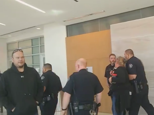 Sheriff’s deputies approached Loma and other Occupy Denver members and ordered them to leave, saying they had been disturbing courtroom proceedings. Loma asked to see a written order and argued with the deputies for a few minutes before one escorted him down the stairs and out of the building. In the video, several people can be heard yelling and screaming expletives in the hallway above. Loma then yelled, “Anyone who’s got a phone, call 911! Denver sheriffs are assaulting civilians!” Outside the courthouse, Loma and others continued to verbally clash with sheriffs.
