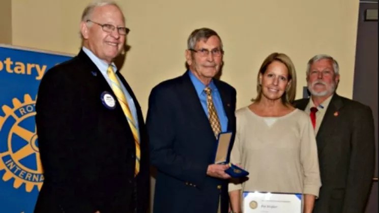 Pat Stryker accepting a 2014-2015 Service Above Self award from the Rotary Club of Fort Collins.