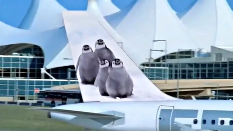 This screen capture from a 2009 Frontier ad spotlights Denver International Airport.