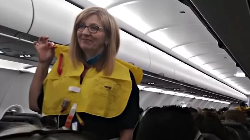A screen capture from a November 2018 video celebrating Frontier’s funniest flight attendant.