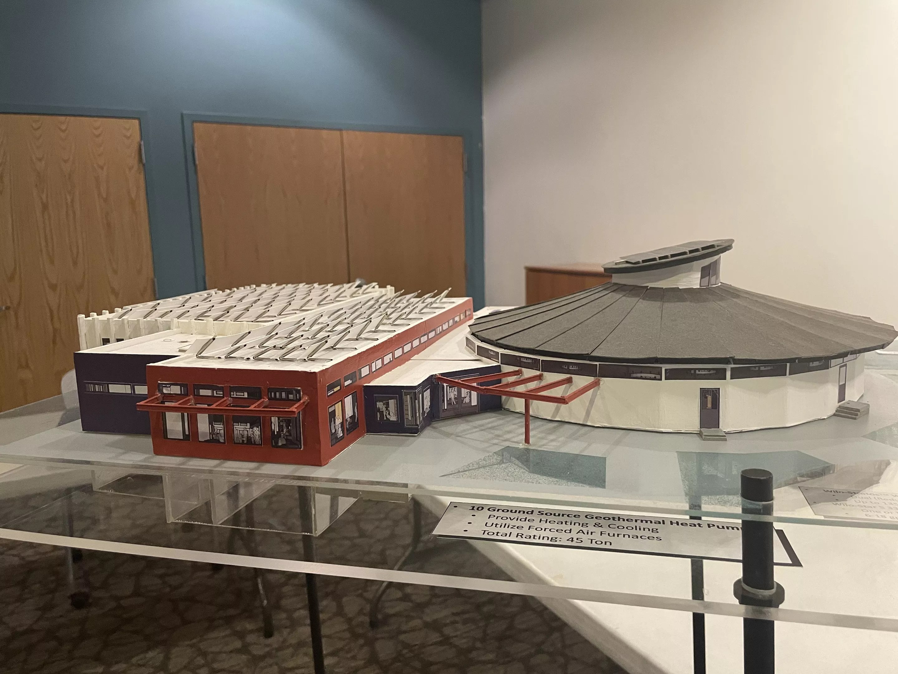 A model showing the carbon footprint of First Universalist Church of Denver.