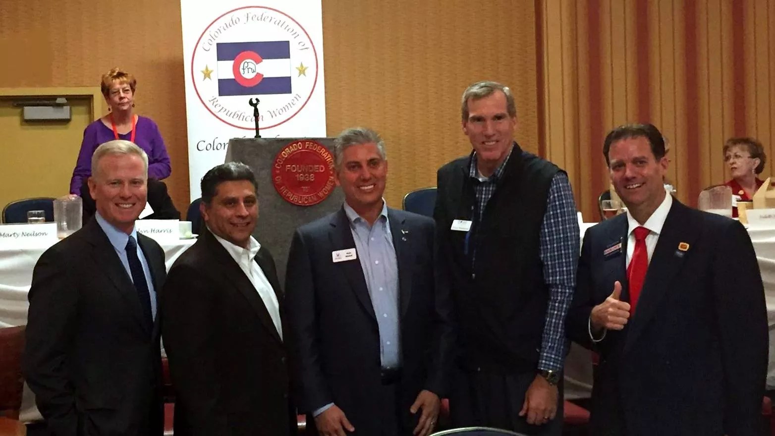 George Brauchler, Greg Lopez, Victor Mitchell, Doug Robinson and Steve Barlock at a campaign event last October.