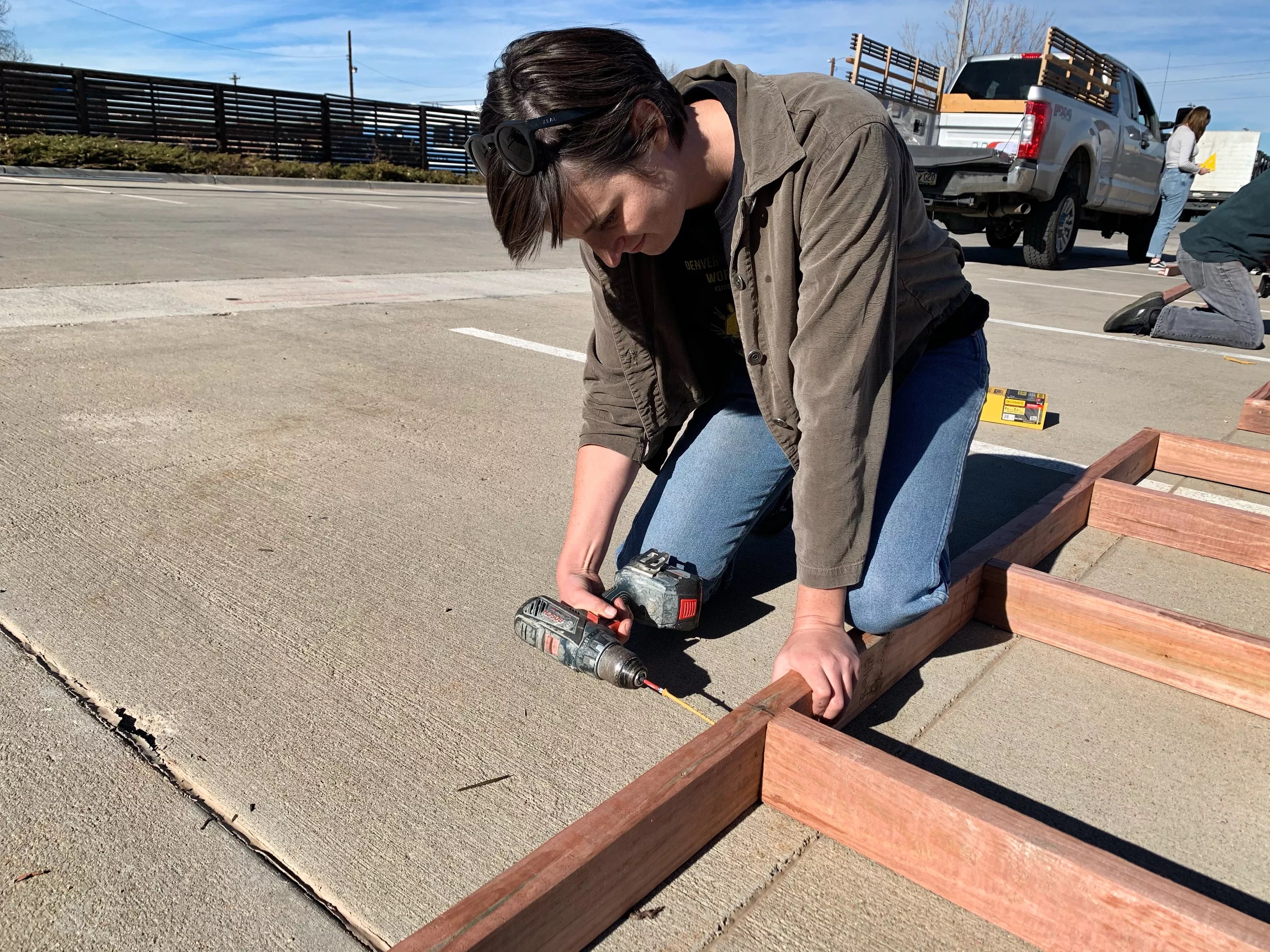 On the first Friday in December, Grey Waletich ran from one group to another in the parking lot of the Denver Human Services building at 3815 Steele Street, sharing details of the day’s plan to build out the city’s sixth safe-camping site.