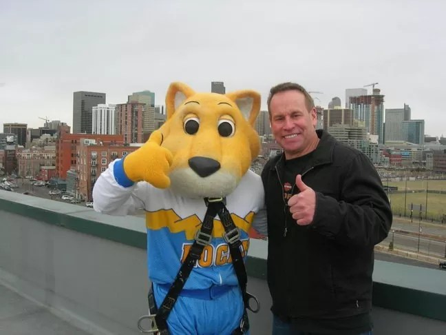Former 103.5 The Fox personality G-Man with Rocky, mascot of the Denver Nuggets.
