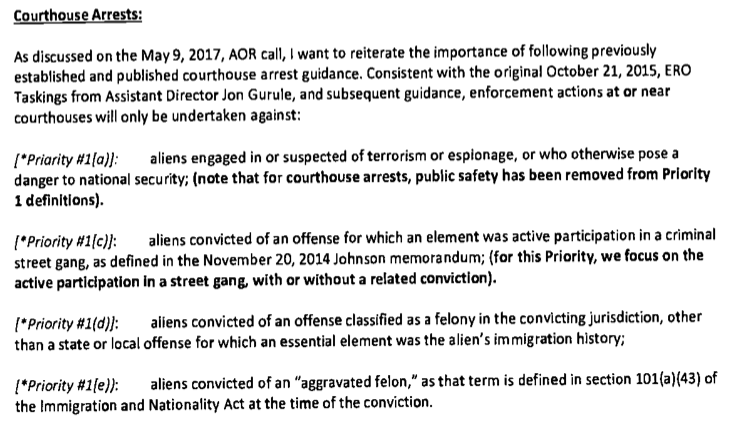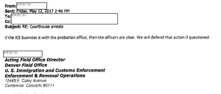 Other emails included in the FOIA documents show various ICE personnel asking for clarification about agency procedures – not just for courthouse arrests, but also for arrests at probation offices.