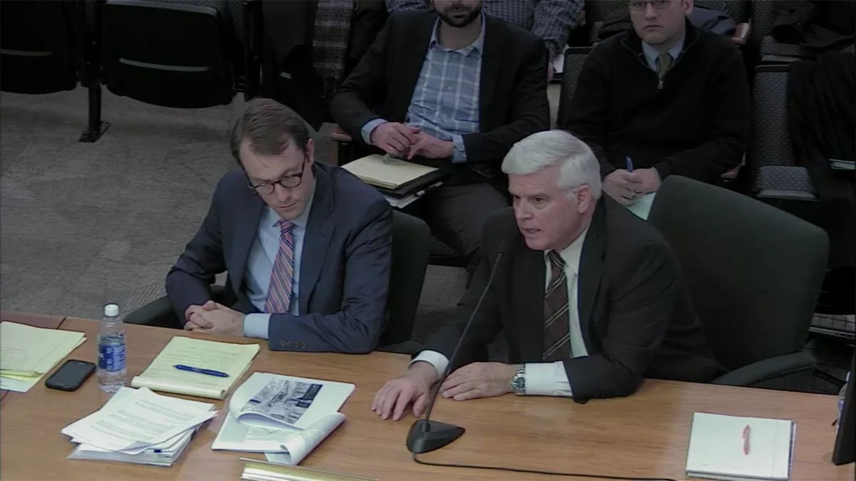 Three Dinos partner Greg Stevinson (right), seen here testifying before county planning officials last month, says his company is trying to develop the property