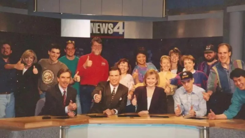 Jim Benemann, center, with the CBS4 Denver news crew in 1994, shortly before leaving for a stint at KGW in Portland, Oregon.