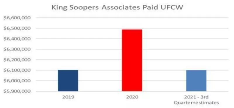 Trowbridge contends that associates have paid Local 7 “nearly $20 million over the last three years,” as seen in this graphic supplied by King Soopers: