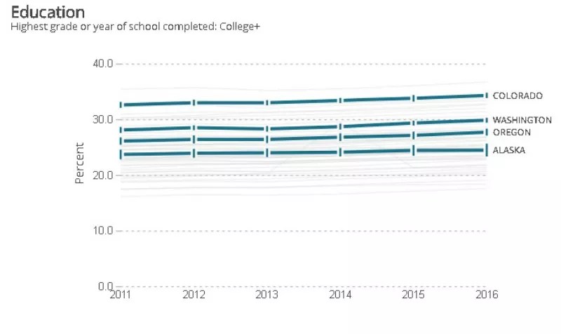 Also addressed are other issues frequently mentioned by opponents of marijuana legalization – harm to young people and problems on the job. The following graphics show that the education rate in Colorado remains impressive….