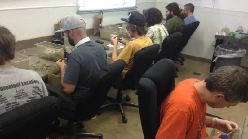 Trimmers at Pink House’s grow facility circa 2014.