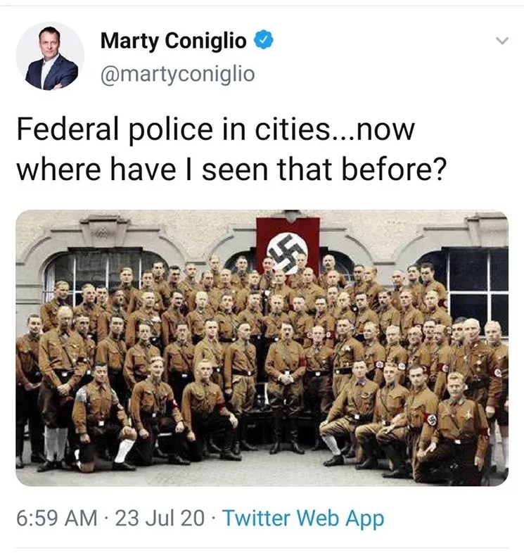 Marty Coniglio left 9News in July, the day after he compared federal troops in U.S. cities to Nazis in a tweet.