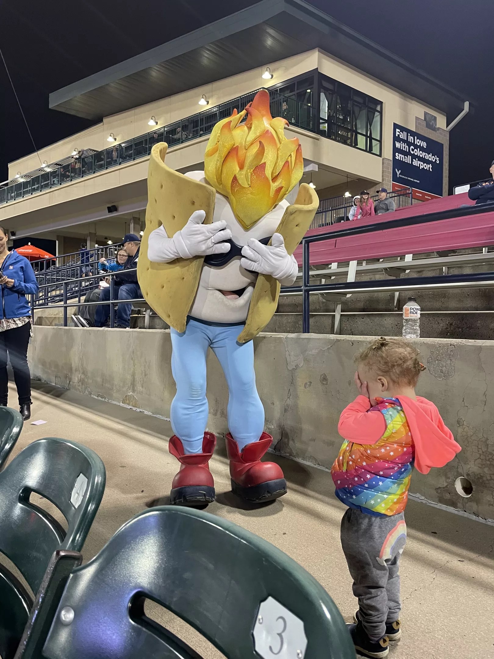 Salario had been sporting the Toasty costume since the end of the 2021 season. His brother, now a cop for the local police department, had previously served as Sox the Fox, the mascot for the Colorado Springs Sky Sox. Mascot work was in his blood.