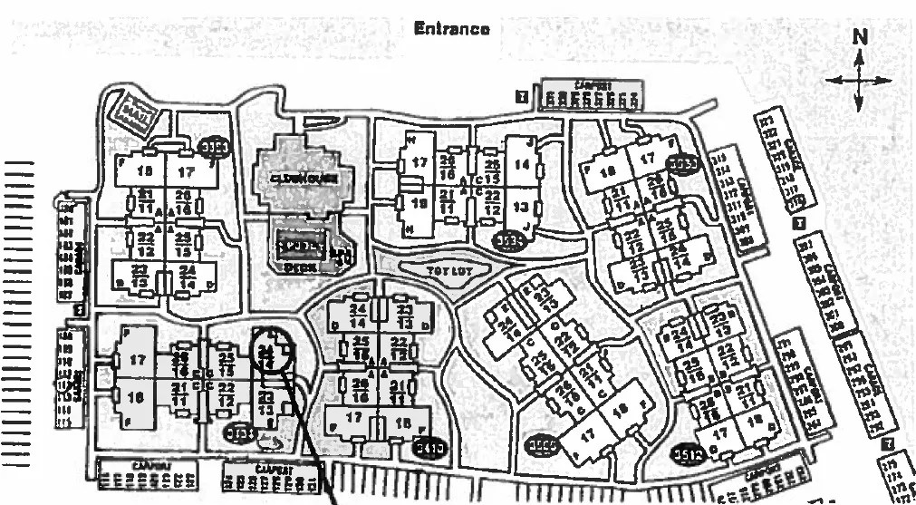 A map of the Cooper Canyon apartments. The circled unit is where the shooting took place.