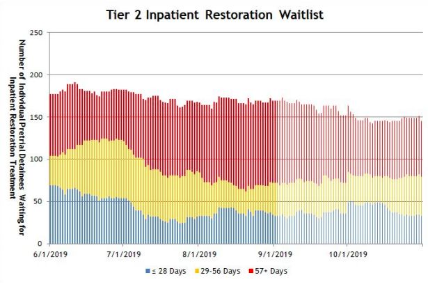 The wait time for restoration treatment at the state hospital can still be months, despite increased efforts to address the issue.