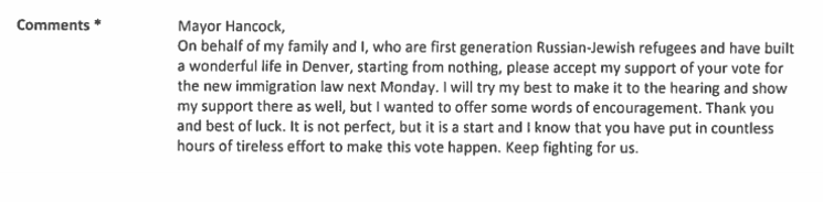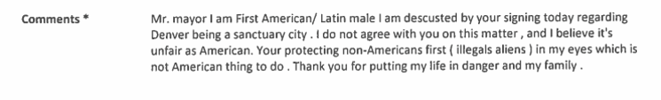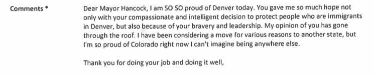 But for all the vitriol, many people, including some immigrants, declared strong support for Denver’s stance on immigration. Here are a handful of messages in support of Denver’s new immigration ordinance: