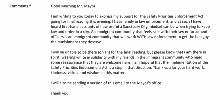 What do you think of the new immigration ordinance that limits cooperation with ICE?