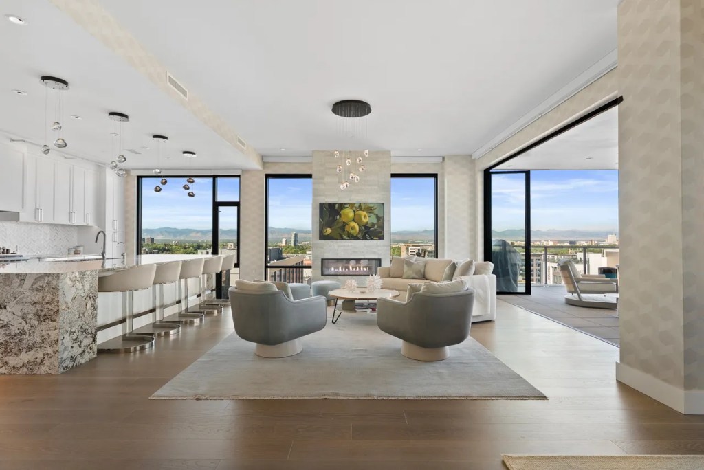 The lone penthouse on this list sits on the twelfth floor of the Laurel condominium complex in Cherry Creek North. It offers panoramic views of the Rocky Mountains, with terraces facing west, north and east. The kitchen has professional-grade Wolf appliances, there are multiple gas fireplaces, and the Laurel’s amenities include a private concierge, rooftop pool and an outdoor pizza kitchen. But the real sell is the location within “Denver’s finest neighborhood,” as the listing puts it.