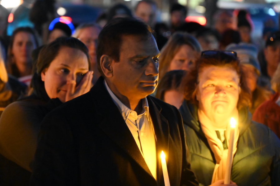 mourners hold candles at vigil