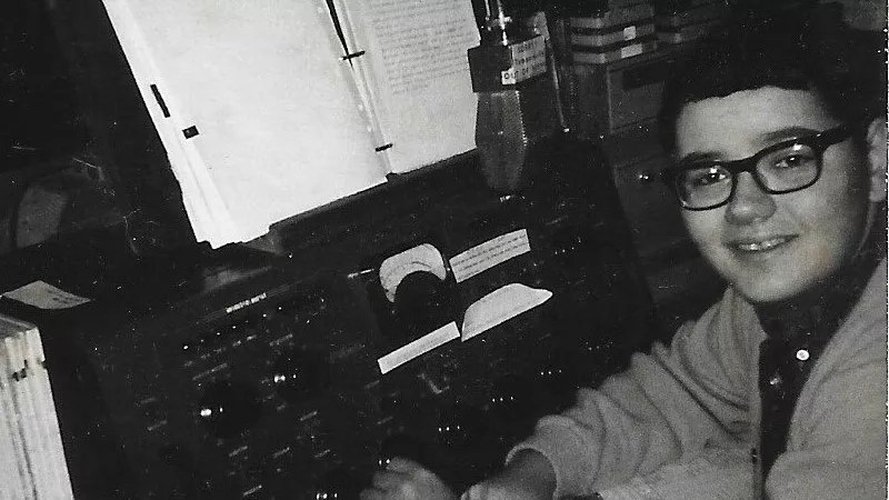 Mike Flanagan at his first radio station, KWSH in Wewoka, Oklahoma, where he worked from 1966 to 1968.