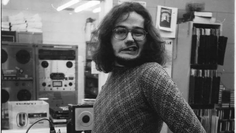 Mike Flanagan at KOFM radio in Enid, Oklahoma, circa 1972.