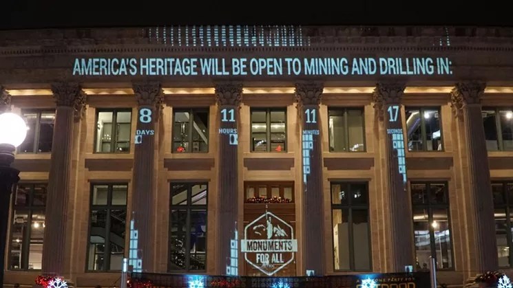 In January, on the eve of the Outdoor Retailer + Snow Show in Denver, Patagonia joined with several advocacy groups to turn the McNichols Building in Civic Center Park and the Bureau of Land Management headquarters in Lakewood into canvases of environmental protest.