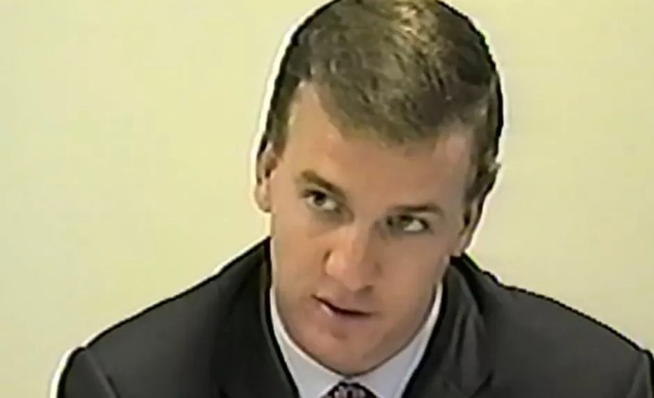 Peyton Manning during his 2003 deposition, as seen in the Inside Edition segment.