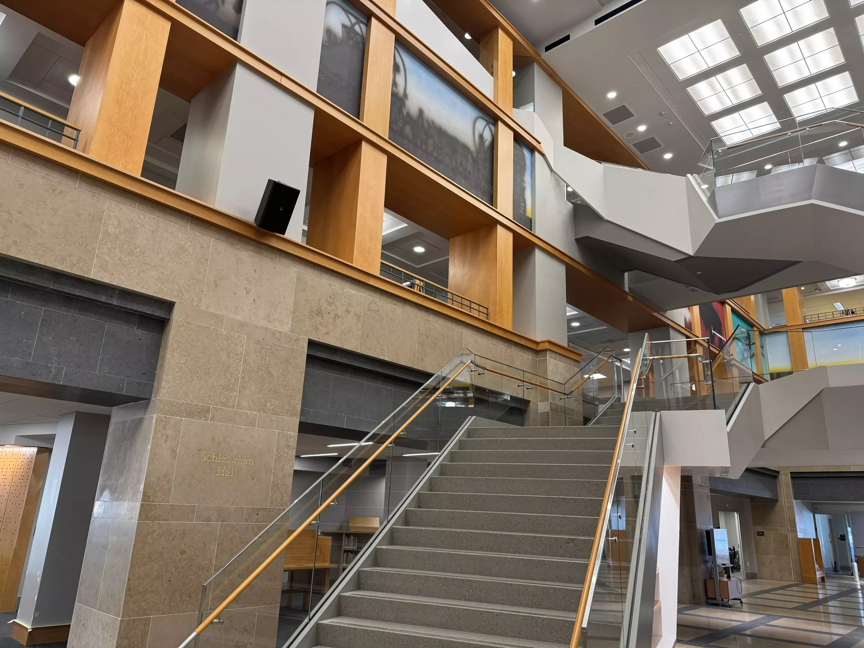 Instead of unreliable escalators, the Central Library now has a grand staircase system.
