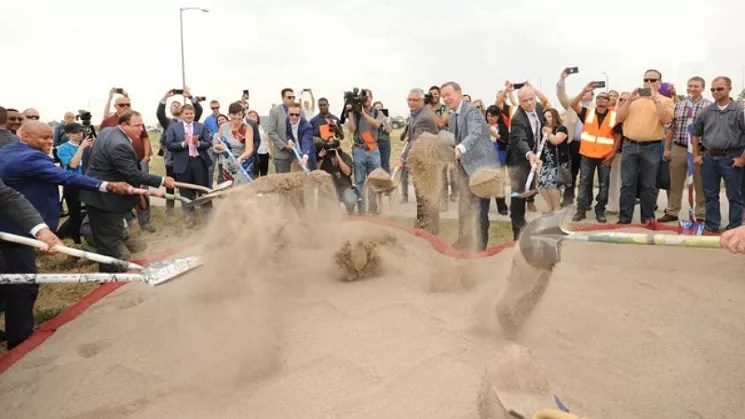 Then-Colorado governor John Hickenlooper and Denver Mayor Michael Hancock were among the dignitaries who took part in the Central 70 project groundbreaking on in August 2018.