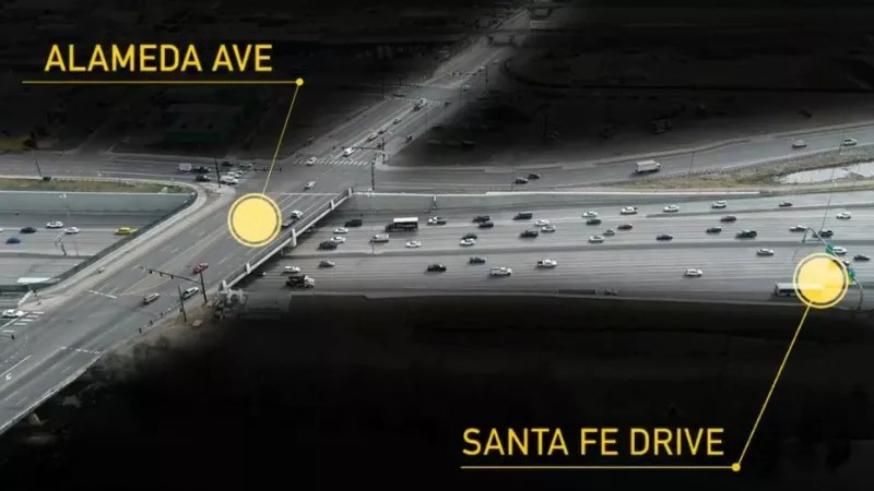 This CDOT photo-illustration depicts the traffic volume on Santa Fe and Alameda.