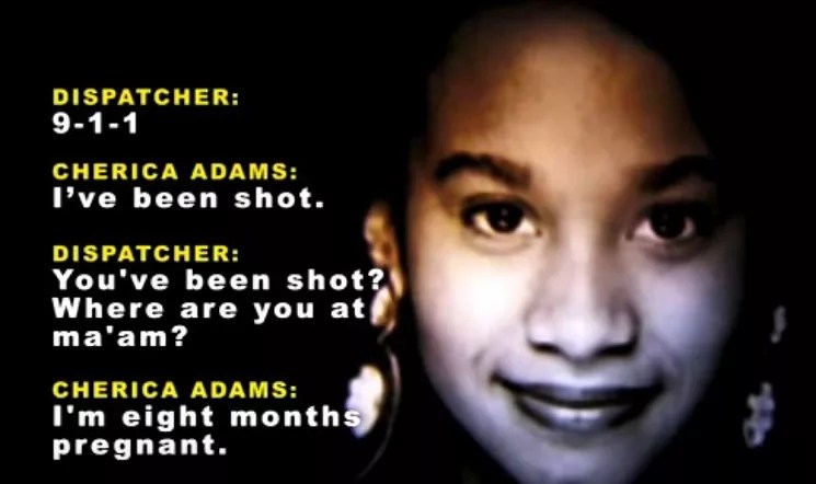 A photo of Cherica Adams juxtaposed with the transcript from her 911 call.
