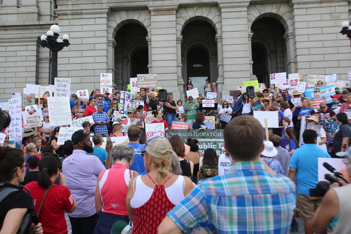 An instance of local activism: Hundreds gathered at the State Capitol on Wednesday, July 19, to protest U.S. Secretary of Education Betsy DeVos while she was in town for a public speaking engagement.