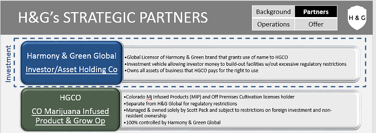 Pack countered this claim in our previous post by pointing out that Harmony & Green LLC, the company in which Pierre and Christophe purchased equity, doesn’t grow, extract or sell marijuana. Instead, it’s used as a brand for, and facility sub-leasor to, HGCO LLC. This distinction is reinforced by the Harmony & Green LLC website, which neither mentions marijuana nor includes typical cannabis imagery. On the site, Harmony & Green LLC is described as “a streamlined business support company set up to assist companies who specialize in agricultural cultivation, manufacturing, extraction, beautification, refinement & the wholesale & retail distribution of elite & unique specialty products.”