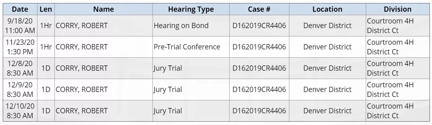 But today, September 18, Corry is due in Denver District Court not to represent a client, but to defend himself. The hearing is one of five dates in the jurisdiction for Corry, including three days blocked out for a December jury trial – and they represent only part of a lengthy docket that includes five separate accusations in two states.