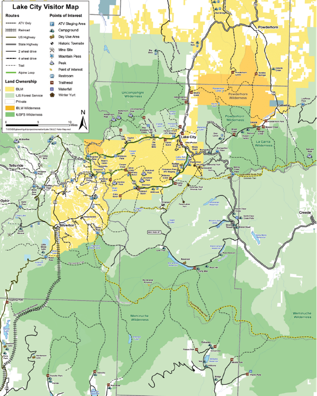 The Alpine Loop Backcountry Byway is a multi-use, natural-surface trail that is heavily used by OHV traffic connecting Silverton and Ouray. A 1.5-mile gap near Lake City needs to be filled to complete the 64-mile natural-surface trail that carries motorized and non-motorized users between scenic Silverton and Ouray. An environmental impact assessment will be necessary to advance this project.
