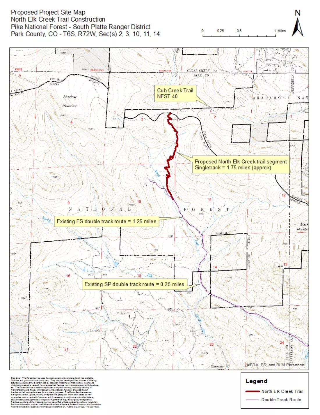 The North Elk Creek Trail would connect Staunton State Park’s trail system to the Cub Creek Trail and Mt. Evans Wilderness in the Pike National Forest. The natural-surface single-track trail would serve the mountain foothill communities of Aspen Park, Conifer, and Evergreen and would be an integral link to the Town of Bailey’s planned trail system. An environmental impact assessment has been completed, and with adequate funding, the project could be completed in 2016.