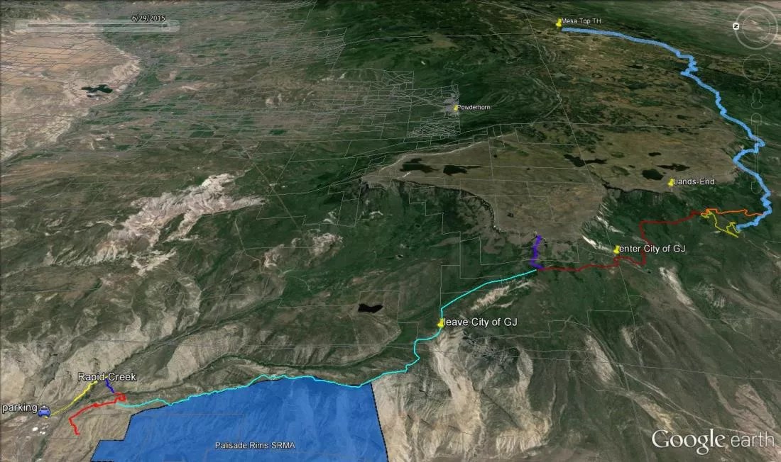 The Palisade Plunge, located in Mesa County, is a proposed natural-surface single-track trail that begins at the Mesa Top Trail and ends at Rapid Creek Road near the town of Palisade. This project would provide unique and high-quality recreational trail opportunities connecting areas of diverse terrain to local municipalities and services. Users would have access to the Town of Palisade, the Town of Mesa, and Powderhorn Mountain Resort. An environmental impact analysis will be required to move this concept project forward.