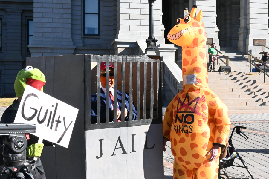 The gathering at the Capitol’s west steps was organized by Solidarity Warriors, a group of Denver area activists. Denver Communists and Rise and Represent, two other local groups, were also involved. Local punk rock bands and hip-hop groups like Poison Politix, Radio Fry and Hoodie Hilltop played live music to a crowd that included protesters dressed as Kermit the Frog, Darth Vader and the Statue of Liberty. Some of them were part of the Colorado Bridge Trolls, a group that gathers above major roads, holding signs protesting Trump.