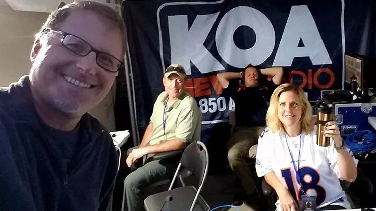 Steffan Tubbs, April Zesbaugh and the KOA morning crew at Broncos training camp in July.