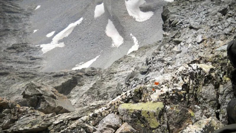 Likewise, Seeds always kept his limitations in mind. “I don’t have any knowledge as far as ropes go,” he acknowledges, “and for any of the standard routes on fourteeners, you don’t need them. There’s a couple, like Longs Peak, where you need ropes if you do the front side. I have a friend who’s actually done the front side of that mountain; it took an entire day. And if you want to go up the north face of Capitol, you need rope, and if you want to go from North Maroon Peak to Maroon Peak, that thirty-foot climb, you need a rope. So I know where you need ropes and where you don’t need ropes” – and he tries to sticks to routes where they’re not needed.