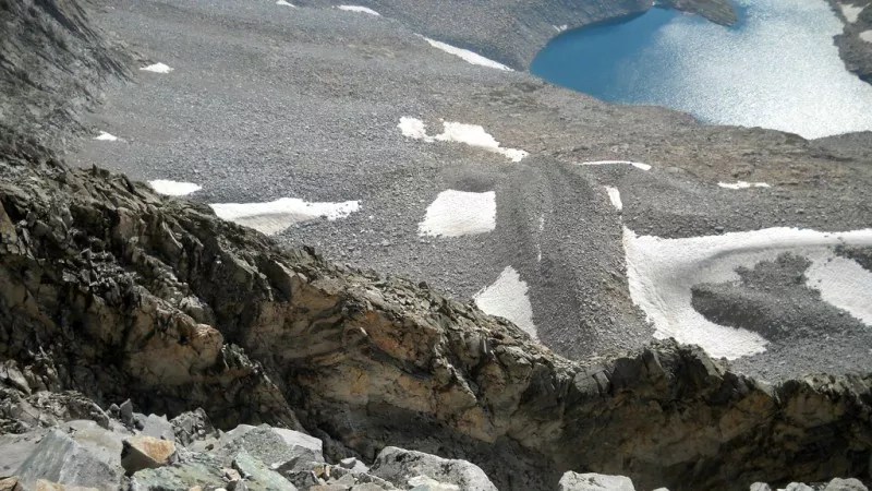 One of the Pierre Lakes on the south side of the Knife’s Edge, as seen from Capitol Peak.