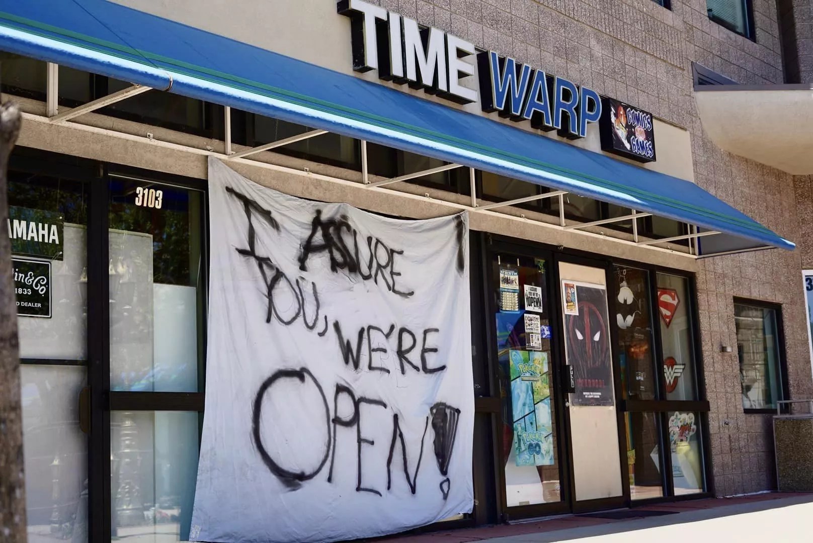 “It takes a village, I’ll tell you,” concludes Winsett. “Our customers at Time Warp are just the best. We’ve had people donating money, donating books. People have really reached out. That’s the thing that’s been really satisfying about this whole thing. They tell us that the store is important to them, and that’s been absolutely heartwarming.”