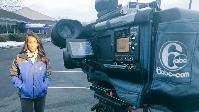 TaRhonda Thomas during her first live shot in Philadelphia.