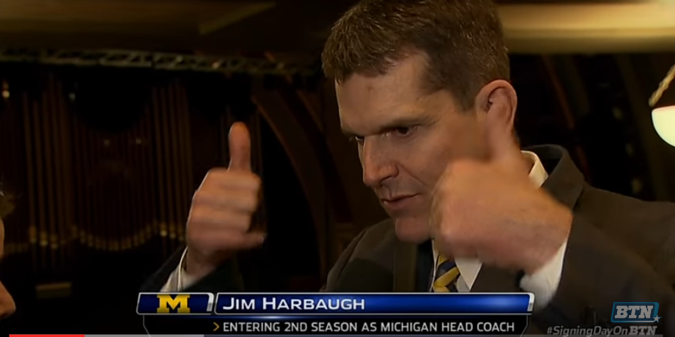 Jim Harbaugh is thumbs-up on the college game. The NFL? Not so much.