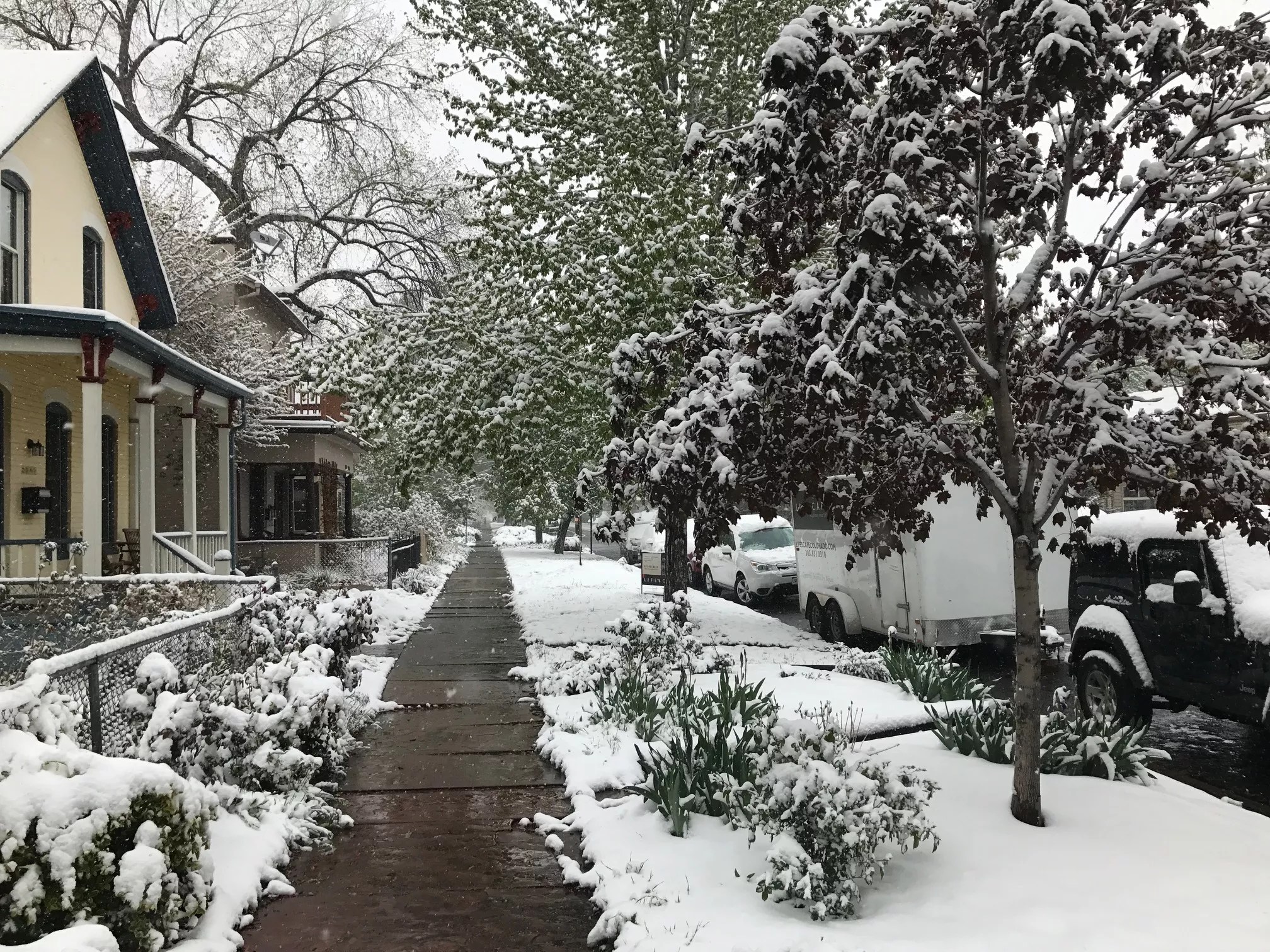 Spring snows in Denver: when the sidewalks scoop themselves.