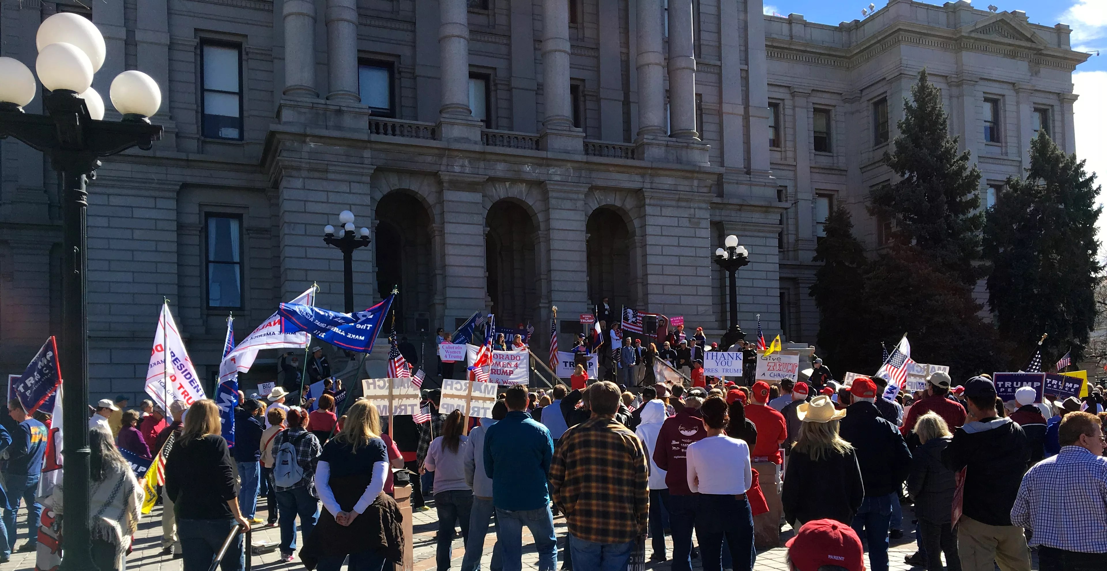 Colorado supporters of President Donald Trump made their presence known on Saturday, March 4, by staging a rally on the steps of the State Capitol building. Hundreds came to the rally, some wearing patriotic costumes (like Uncle Sam suits) and others waving “Don’t Tread on Me” or “Trump/Pence” flags.